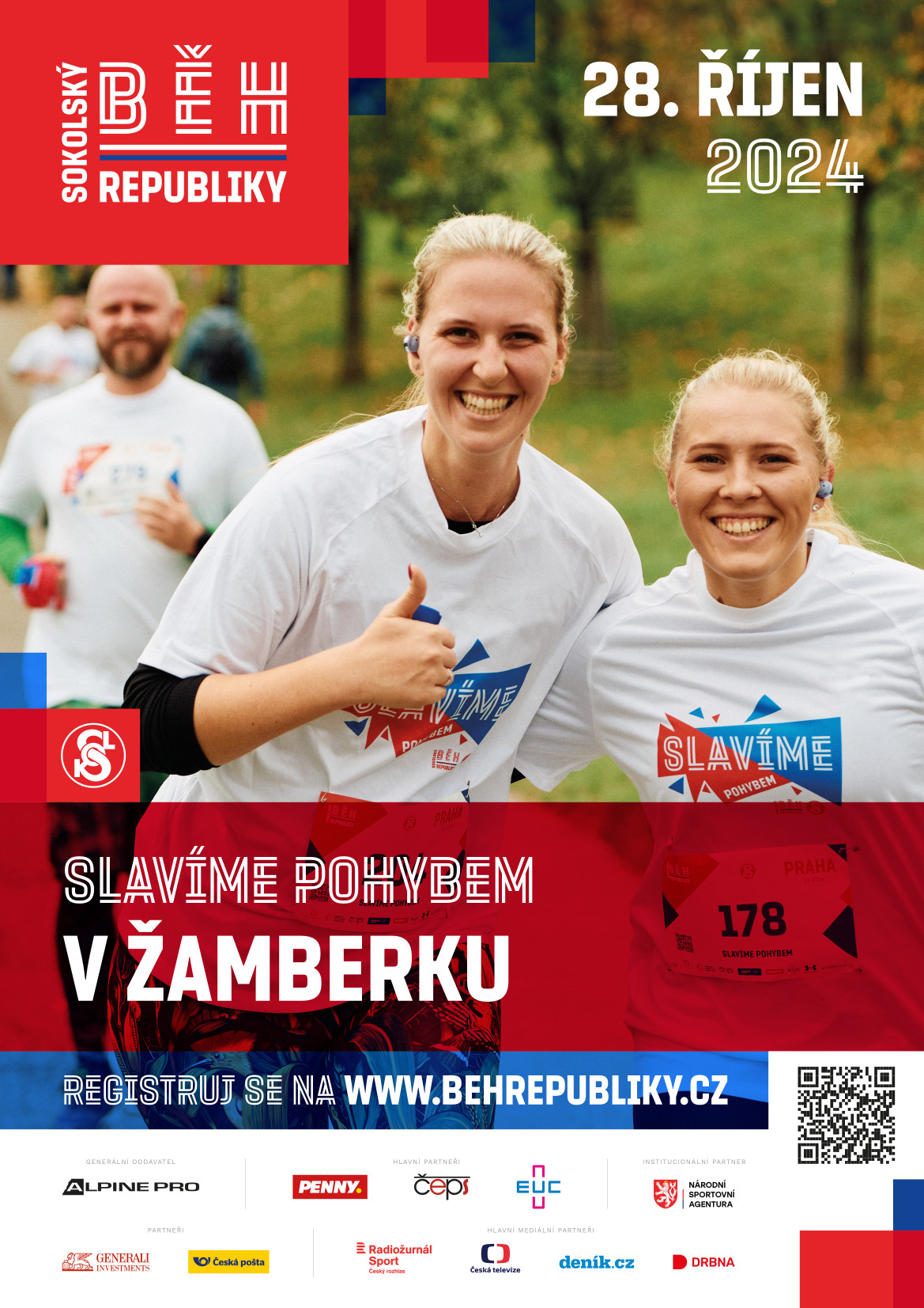 Registrace na běh v národních barvách, který se bude konat 28. října 2024 v Žamberku, jsou spuštěny na webu www.behrepubliky.cz. Pro každého předem registrovaného bude připraven startovní balíček a medaile v cíli. Kapacita je omezena, tak neváhejte a registrujte se včas. (nejpozději však do 23. října 2024 nebo do naplnění kapacity) Na místě se lze hlásit i nad kapacitu závodu. Startovné na místě bude vyšší o 30Kč. Takto registrovaní závodníci nemají nárok na startovní balíček ani medaili.